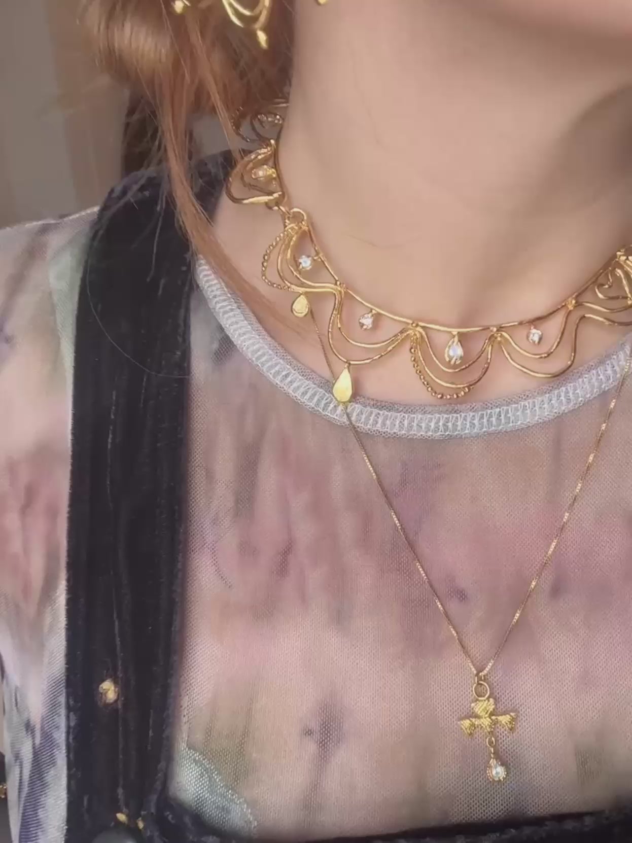 Sizing: Approx 29cm in length (not including chain) with a 20cm long chain, the choker is adjustable to fit all neck sizes, leaving an elegant trail of chain to run down the back. She can be worn both on the neck as a choker or lower down and on the collarbone as a necklace.